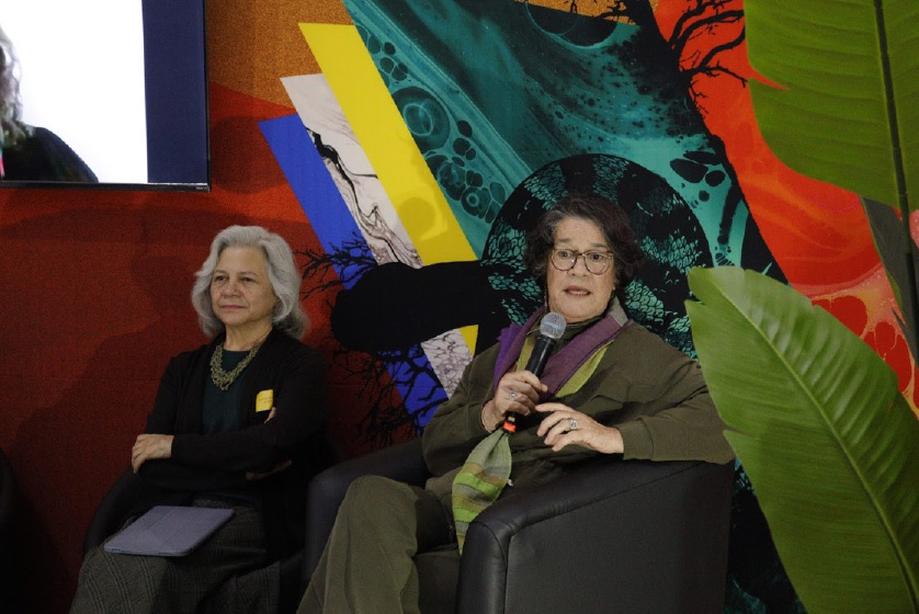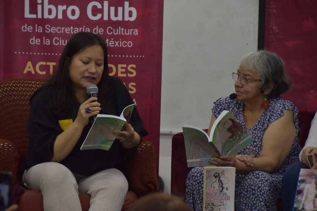 Graciela Roque y Guadalupe Calles en la presentación del libro Mujeres con mala reputación en la 47° FIL del Palacio de Minería