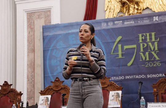 Marcela Barreiro presentó su obra Todas las voces, libro autobiográfico construido a partir de textos y capítulos breves que rompen con la cronología lineal tradicional, en el marco de la 47ª edición de la FIL Palacio de Minería.