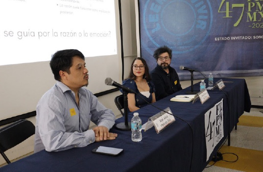 De izquierda a derecha: Alan Alexis Mercado Ruiz, Paola Eunice Díaz Rivera y Rubén Andrés Miranda-Rodríguez en la presentación del libro ¿Qué es hacer lo correcto?