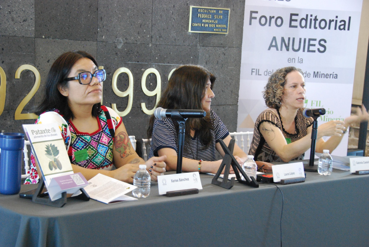 Xariss Sánchez Chino, Laura López y Gabriela Castellanos Morales en la FILPM.