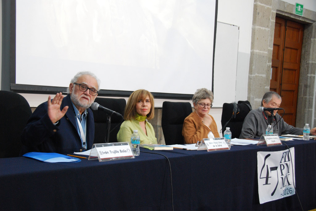 De izquierda a derecha: Iván Trujillo Bolio, Alma Rosa Alva de la Selva, Magdalena Acosta Urquidi y Federico Dávalos Orozco durante la presentación del libro Televisión Universitaria Tomo II. Un canal de televisión para la UNAM (1985-2025).