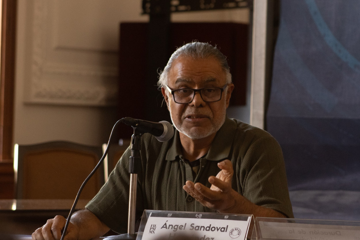 Ángel Sandoval durante la conferencia: ¡A luchar por la nueva revolución socialista!