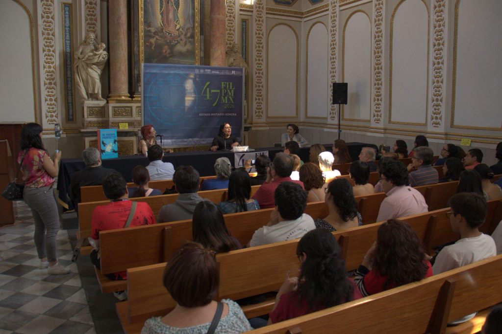 Fernanda Tapia y Cristina Lozano en la presentación del libro Un cuerpo perfecto en la 47FILPM